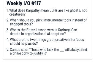Weekly I/O #117: LLMs are Ghosts not Creatures, Instrumental and Engaged Tools, Bitter Lesson or Garbage Can, Interfaces Help See and Express, Justify…