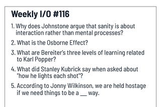 Weekly I/O #116: Sanity is Performance, Osborne Effect, Three Worlds of Understanding, Artists Defy Education, Hostage by Need