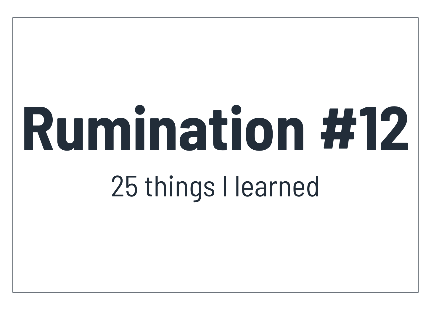 The rumination series are one of the most popular posts in Weekly I/O. You can read the previous one here. You can also find the Chinese Translation here.