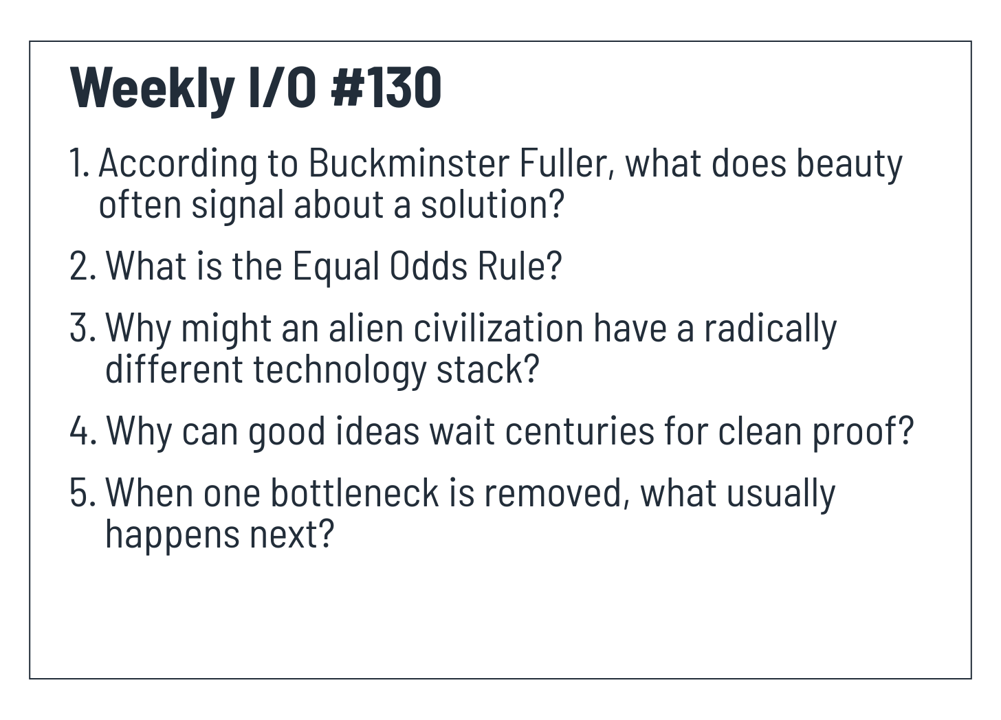 Weekly I/O #130: Beautiful Solutions, Equal Odds Rule, Alien Tech Trees, Slow Verification Loops, Moving Bottlenecks
